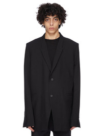 RICK OWENS FW25 CONCORDIANS RUNWAY CONCORDIAN JKT IN BLACK GRAIN DE POUDRE THIS CONCORDIAN JKT IS BELOW-HIP LENGTH WITH LONG SLEEVES. IT HAS CLASSIC SLOPING SHOULDERS WITH LEVEL SHOULDER SNAPS AND A SLIM LAPEL, WITH DOUBLE BUTTON CLOSURE AND TWO LOWER SIDE FRONT JET POCKETS. IT HAS 5 BUTTON CUFFS, A BACK VENT AND FEATURES AN ADJUSTABLE, THIN COTTON WEBBING DISCO STRAP, WITH CLIP, ACROSS THE BACK YOKE. IT IS FULLY LINED AND HAS TWO INTERNAL BUTTONED POCKETS THIS MEDIUMWEIGHT WOOL GRAIN DE POUDRE FABRIC HAS A ROUND AND SOFT HANDFEEL THIS FABRIC IS MADE FROM RWS CERTIFIED VIRGIN WOOL WHICH ENSURES A HIGH STANDARD IN ANIMAL WELFARE, ENVIRONMENTAL SUSTAINABILITY AND SOCIAL RESPONSIBILITY. EACH BALE OF WOOL IS TRACEABLE BACK TO ITS SOURCE COLOR: BLACK MATERIAL: 100% NEW WOOL MODEL IS 189CM TALL MODEL WEARS SIZE 48