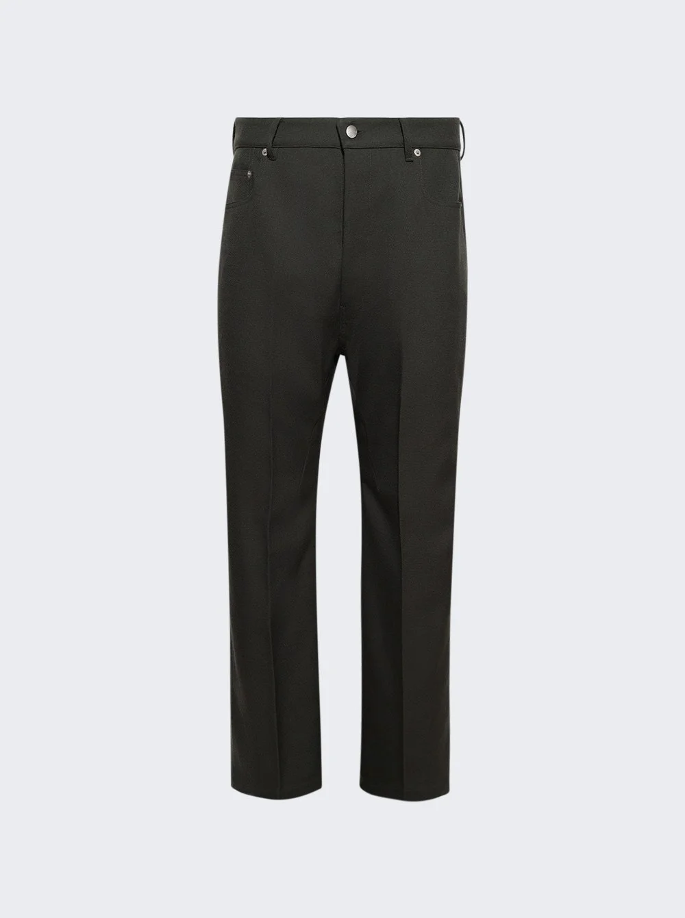 Details - Brushed twill jeans - 5-Pocket styling - Low rise and wide fit - Silver button fly, belt loops, pocket rivets - Material: Cotton twill Size Information: Vendor Color Code: Brand Style: RU02E1333 WD Designer/Brand: RICK OWENS