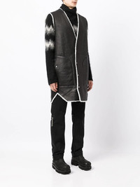 contrasting trim leather gillet black lambskin contrasting trim V-neck front button fastening sleeveless two button-fastening pockets straight hem Imported Composition Lambskin 100% SIZE & FIT Model measurements Height 6 ft 2 in(1.87 m) Bust/Chest 35.43 in(90 cm) Hips 36.41 in(92.5 cm) Waist 27.55 in(70 cm) FittingInformation This piece fits true to size. We recommend you get your regular size Cut for a loose fit Made with a mid-weight non-stretch fabric Washing instructions Specialist Cleaning
