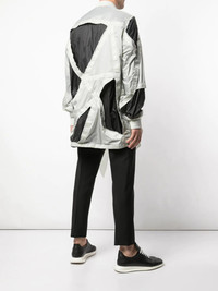 cut-out detail jacket Grey and black cut-out detail jacket from Rick Owens featuring a round neck, a concealed zip fastening, long sleeves, side pockets and a short length. Made in Italy Composition Nylon 100% SIZE & FIT Model measurements Height 6 ft 2 in(1.88 m) Bust/Chest 38.18 in(97 cm) Hips 37 in(94 cm) Waist 29.92 in(76 cm) Washing instructions Hand Wash