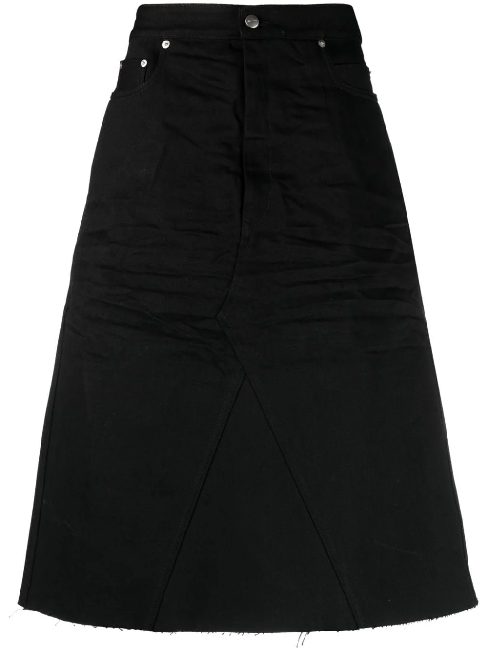 distressed-finish knee-length denim skirt Highlights - Black - Cotton - Denim - Belt loops - Concealed fly and button fastening - Classic five pockets - Below-knee length - Distressed finish Made in Italy Composition Outer: Cotton 100% Lining: Polyester 52%, Cotton 48% SIZE & FIT Model measurements Height 6 ft 2 in(1.87 m) Bust/Chest 36.61 in(93 cm) Hips 35.03 in(89 cm) Waist 27.95 in(71 cm) FittingInformation Sturdy and hard-wearing, this denim piece offers no stretch This piece fits true to size – take your usual size Washing instructions Hand Wash