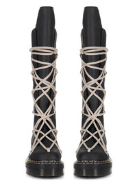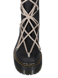 DR. MARTENS X RICK OWENS FW25 1B60 QUAD SOLE PENTALACE BOOT IN OILY NUBUCK COW LEATHER THESE DR. MARTENS ICONIC 1B60 BOOTS ARE REIMAGINED BY RICK OWENS AND HAVE PEARL PENTALACE LACING AND PALLADIUM FINISH HARDWARE, INCLUDING TUNNEL LOOPS AND SIDE ZIPPER. THE BOOT FEATURES AN EXTENDED GEOMETRIC TONGUE AND HAS A WOVEN DR. MARTENS AIRWAIR HEEL LOOP IN BLACK AND PEARL. THEY HAVE A QUAD SOLE WITH A YELLOW AND PEARL WELT STITCH THIS HEAVYWEIGHT NUBUCK COW LEATHER HAS A FLAT AND MATTE SURFACE FINISH AND AN OILY HANDFEEL COLOR: BLACKMATERIAL: UPPER 100% COW LEATHER LEG LINING: 100% COW LEATHER UPPER LINING: 50% NYLON + 50% POLYURETHANE SOLE: 100% POLIVINILCLORURO PLEASE NOTE THE SHOE SIZE LISTED ON THE PRODUCT DESCRIPTION PAGE CORRESPONDS TO UK SHOE SIZE WE STRONGLY RECOMMEND OUR CLIENTS TO CHECK THE SIZE CHART BEFORE PLACING AN ORDER TO AVOID ANY POTENTIAL INCONVENIENCE FEEL FREE TO CONTACT CUSTOMERCARE@RICKOWENS.EU FOR ANY ASSISTANCE