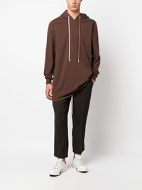 drawstring long hoodie Highlights - Chocolate brown - Organic cotton - Drawstring hood - Long sleeves - Elasticated cuffs - Long length - Straight hem Made in Italy Composition Outer: Organic Cotton 100% Lining: Organic Cotton 100% SIZE & FIT Model measurements Height 6 ft 2 in(1.89 m) Bust/Chest 37.4 in(95 cm) Hips 35.03 in(89 cm) Waist 27.95 in(71 cm) FittingInformation Designed to be unstructured, offering a loose fit throughout Made from a midweight non-stretch fabric, this piece offers minimal elasticity when worn This piece fits true to size – take your usual size Washing instructions Hand Wash