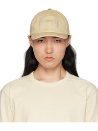 ZDHC-certified 10 oz stretch denim cap. · Overdyed and foil-coated · Text embroidered at face · Curved brim · Snapback fastening at back · Partial plain-woven cotton lining Supplier color: Parchment/Pearl Body: 90% cotton, 7% polyester, 3% rubber. Trim: 100% cotton. Made in Italy 251126M139007