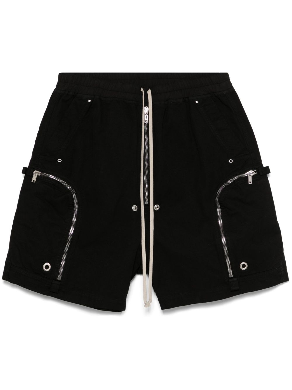 Bauhaus shorts Highlights - Black - Elasticated drawstring waistband - Two side welt pockets - Two side zip-fastening pockets - Two rear welt pockets Made in Italy Composition Organic Cotton 97%, Elastane 3% SIZE & FIT Model measurements Height 6 ft 2 in(1.87 m) Bust/Chest 37.4 in(95 cm) Hips 36.61 in(93 cm) Waist 29.13 in(74 cm) FittingInformation Designed with a dropped crotch, offering a loose and relaxed fit The elasticated waist allows for a comfortable fit Made from a midweight stretch fabric, this piece offers elasticity and flexibility when worn