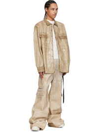 Overdyed and foil-coated stretch denim cargo pants. Fading and creases throughout. · Wide-leg · Drawstring at elasticized waistband · Four-pocket styling · Exposed zip fly · Eyelets and rivets at front · Extended hem · Dropped inseam · Cargo pockets at outseams Supplier color: Parchment Body: 90% cotton, 7% polyester, 3% rubber. Lining: 100% cotton. Made in Italy 251126M188021