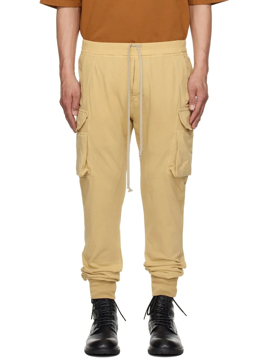 Heavyweight GOTS-certified organic cotton jersey cargo pants. · Garment-dyed · Slim-fit · Drawstring at elasticized waistband · Four-pocket styling · Button fly · Rib-knit cuffs · Cargo pocket at outseams Supplier color: Parchment Body: 100% organic cotton. Trim: 97% cotton, 3% rubber. Made in Italy 251126M188014