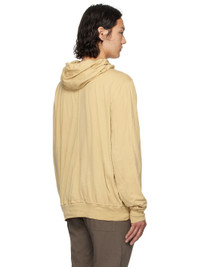 Lightweight GOTS-certified organic cotton gauze jersey hoodie. · Garment-dyed · Oversized · Drawstring at hood · Rib-knit hem and cuffs · Dropped shoulders · Central seam at back · Integrated logo-woven strap at interior Supplier color: Parchment 100% organic cotton. Made in Italy 251126M202015