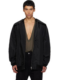 Insulated recycled nylon taffeta bomber jacket · Rib knit stand collar, hem, and cuffs · Zip closure · Seam pockets at waist · Press-stud vent at shoulders · Dolman sleeves · Welt pockets at interior · Integrated logo-woven strap at interior · Fully lined · Silver-tone hardware Supplier color: Black Body: 100% polyamide. Trim: 100% cotton. Fill: 100% polyester. Made in Moldova 252126M175001