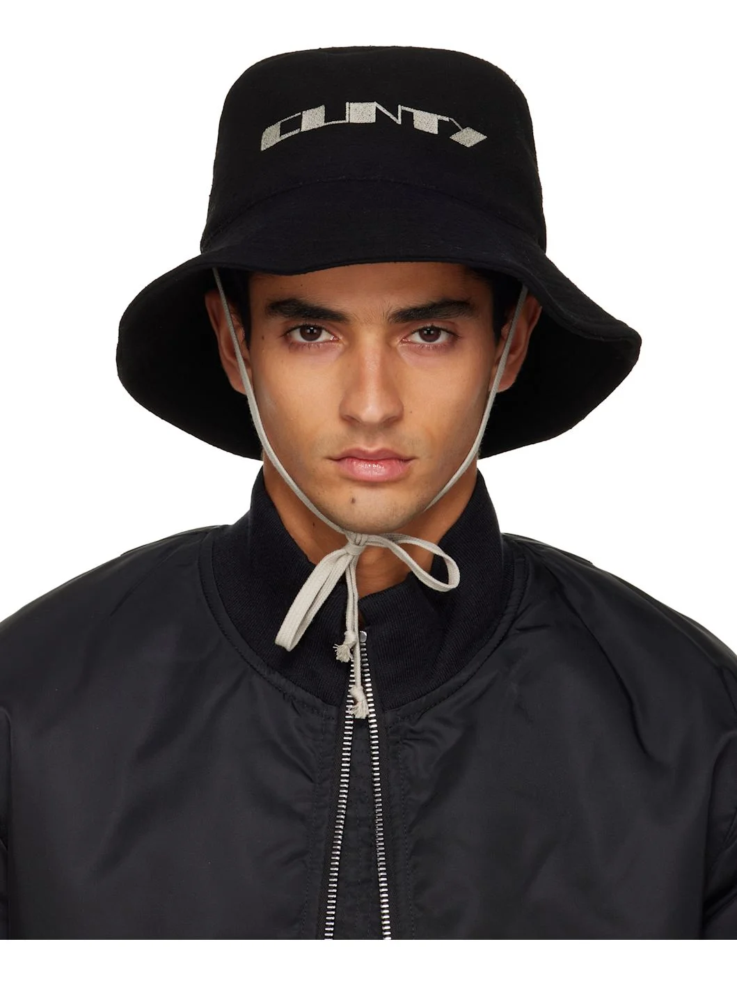 Padded felted organic cotton hat. · Text embroidered at face · Quilted brim · Extended webbing trim at interior · Plain-woven cotton lining Supplier color: Black/Pearl Body: 100% cotton. Trim: 100% polyester. Fill: 100% polyester. Lining: 100% cotton. Made in Italy 252126M140002
