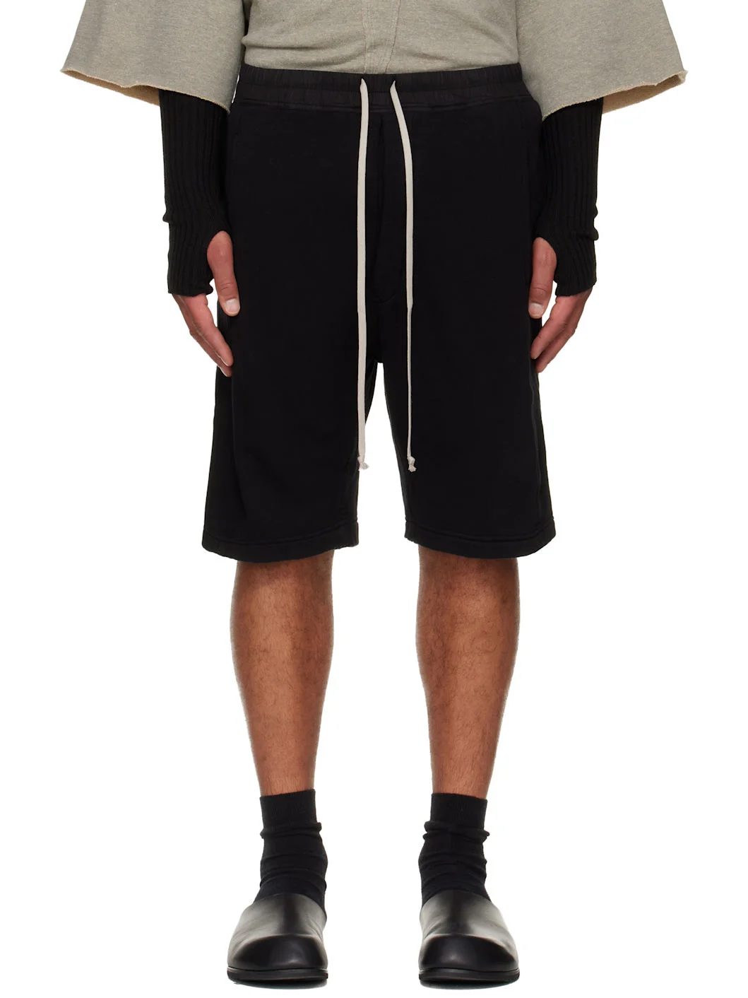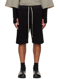 Heavyweight GOTS-certified organic cotton fleece shorts. · Garment-dyed · Drawstring at elasticized waistband · Four-pocket styling · Button fly · Dropped inseam · Press-stud vent at outseams Supplier color: Black Body: 100% cotton. Trim: 97% cotton, 3% elastane. Made in Italy 252126M193018