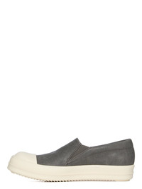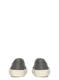 DRKSHDW SS25 HOLLYWOOD BOAT SNEAKS IN DARK DUST/MILK/MILK OVERDYED FOIL STRETCH DENIM THESE BOAT SNEAKS ARE UNDER-ANKLE HEIGHT AND ARE SLIP ON. THEY HAVE AN ELASTICIZED SIDE, A TOE CAP AND A SHARK-TOOTH SOLE THIS LIGHTWEIGHT FOIL DENIM IS MADE ON A 10OZ STRETCH DENIM. THE READY GARMENT IS OVERDYED AND HAS A CLEAR, SEMI SHINY FOIL OVERLAY THAT CREATES A WAXY TOUCH SINCE THE FOIL IS PRESSED ON TOP OF THE FINAL GARMENTS, EACH PIECE WILL HAVE ITS OWN UNIQUE LOOK AND CREASES SINCE THE FOIL WILL ATTACH TO DIFFERENT PLACES DEPENDING ON THE GARMENT THIS GARMENT IS TREATED IN AN ITALIAN WASH HOUSE BASED IN THE VENETO AREA OF ITALY, THAT PRODUCES IN SMALLER TREATMENT BATHS TO REDUCE WATER WASTE AND UTILIZE A WATER PURIFYING PROCESS THAT ENABLES THEM TO RECYCLE A PORTION OF THE WATER USED. ALL OF OUR DENIM WASHES ARE ZDHC CERTIFIED. COLOR: DARK DUST/MILK/MILK MATERIAL: UPPER 90% COTTON + 7% POLYESTER + 3% RUBBER TOE 70% POLYURETHANE + 30% VISCOSE LINING 100% COTTON SOLE 100% THERMOPLASTIC RUBBER SOLE HEIGHT 3.5CM