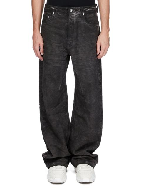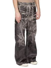 DRKSHDW FW25 CONCORDIANS GETH JEANS IN 13OZ WASHED FOIL DENIM THESE GETH JEANS ARE A FULL LENGTH, 5-POCKET JEAN WITH A MID-RISE AND WIDE FIT. THEY HAVE A CONCEALED ZIPPER FLY WITH TOP BUTTON, A WAISTBAND WITH BELT LOOPS AND POCKET RIVETS. THEY HAVE REAR PATCH POCKETS AND TOPSTITCHING. THIS MEDIUMWEIGHT WASHED FOIL DENIM IS MADE ON A 13OZ JAPANESE BLACK AND NATURAL DENIM. THE READY GARMENT IS BLEACHED INTO A DIRTY PEARL COLOR, A BLACK FOIL OVERLAY IS THEN APPLIED AND FINALLY THE GARMENT IS WASHED TO ACHIEVE THE IRREGULAR LOOK THE NATURAL ASPECTS OF THIS TREATMENT MEANS THE FOIL APPLICATION IS IRREGULAR AND HAS PEELED OFF IN CERTAIN AREAS AND WILL CONTINUE TO DO SO WITH WEAR AND ABRASION. THIS IS AN INHERENT CHARACTERISTIC OF THIS TYPE OF TREATMENT AND IS A DESIRED VISUAL ASPECT WHICH ADDS TO THE UNIQUENESS OF EACH PIECE THIS GARMENT IS TREATED IN AN ITALIAN WASH HOUSE BASED IN THE VENETO AREA OF ITALY, THAT PRODUCES IN SMALLER TREATMENT BATHS TO REDUCE WATER WASTE AND UTILIZE A WATER PURIFYING PROCESS THAT ENABLES THEM TO RECYCLE A PORTION OF THE WATER USED. ALL OF OUR DENIM WASHES ARE ZDHC CERTIFIED COLOR: BLACK WASHED FOIL MATERIAL: 100% COTTON POCKETS LINING 52% POLYESTER + 48% COTTON MODEL IS 189CM TALL MODEL WEARS SIZE 31