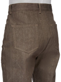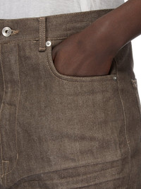 DRKSHDW FW24 PORTERVILLE BOLAN BOOTCUT IN DARK DUST 13OZ DRKDUST DENIM THIS BOLAN BOOTCUT IS A HIGH WAISTED, SLIM FIT 6 POCKET JEAN WITH A FLOOR-LENGTH BOOT CUT. THEY CLOSE WITH A WAIST BUTTON AND CONCEALED BUTTON FLY. THEY HAVE A WAISTBAND WITH POCKET RIVETS AND REAR PATCH POCKETS WITH TOPSTITCHING. THEY FEATURE CREASED WHISKERING AT THE CROTCH THIS MEDIUMWEIGHT DENIM IS A 13OZ JAPANESE SELVEDGE DENIM WOVEN IN FUKUYAMA CITY, HIROSHIMA. IT HAS A STIFF HANDFEEL SINCE THE DENIM IS LEFT RAW, UNTREATED COLOR: DARK DUST MATERIAL: 100% COTTON POCKETS LINING 52% POLYESTER + 48% COTTON MODEL IS 189CM TALL MODEL WEARS SIZE 31