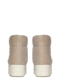 DRKSHDW FW25 CONCORDIANS MEGA BUMPER LOW LUNAR IN DIRTY PEARL/MILK BRUSHED COTTON THESE MEGA BUMPER LOW LUNAR ARE ABOVE-ANKLE HEIGHT. THEY HAVE A SOFT PADDED PULL ON BOOT UPPER WITH QUILTED STITCHED PANELS AND FEATURE DOUBLE HEIGHT, SHARK TOOTH MEGA BUMPER SOLES. THIS MEDIUMWEIGHT BRUSHED COTTON FABRIC IS GARMENT DYED WITH A SOFT AND BRUSHED HANDFEEL THIS FABRIC IS MADE USING GOTS CERTIFIED ORGANIC COTTON WHICH MEANS THE NATURAL FIBER IS GROWN WITHOUT HARMFUL CHEMICALS, LEAVING OUR SOIL, AIR AND WATER CLEANER FROM CONTAMINATES COLOR: DIRTY PEARL/MILK MATERIAL: UPPER 100% COTTON LINING 100% NYLON PADDING 70% POLYURETHANE + 30% POLYESTER SOLE HEIGHT 6.5CM