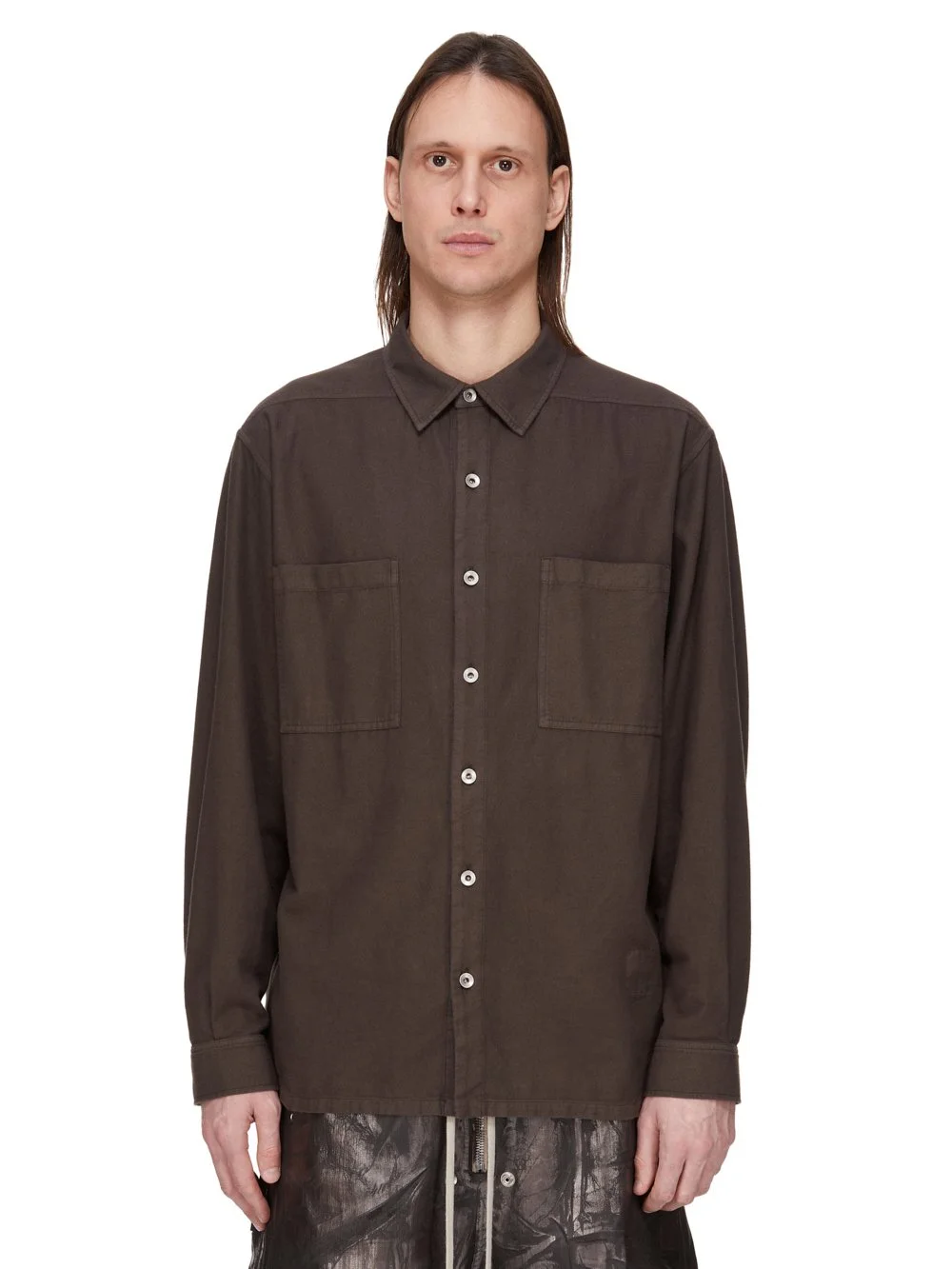 DRKSHDW FW25 CONCORDIANS JUMBO OUTERSHIRT IN DARK DUST LIGHT FLANNEL THIS JUMBO OUTERSHIRT IS BELOW HIP LENGTH WITH A JUMBO OVERSIZED FIT. IT HAS A CENTRE FRONT PLACKET WITH VISIBLE METAL BUTTONS, A CLASSIC COLLAR AND A HEMLINE WITH BEVELED SIDES SEAMS. IT HAS LONG SLEEVES WITH BUTTONED CUFFS, SIGNATURE LEVEL SHOULDER SEAMS AND A BACK YOKE THIS LIGHTWEIGHT COTTON FLANNEL FABRIC IS GARMENT DYED WITH A SOFT AND BRUSHED HANDFEEL THIS FABRIC IS MADE USING GOTS CERTIFIED ORGANIC COTTON WHICH MEANS THE NATURAL FIBER IS GROWN WITHOUT HARMFUL CHEMICALS, LEAVING OUR SOIL, AIR AND WATER CLEANER FROM CONTAMINATES COLOR: DARK DUST MATERIAL: 100% COTTON MODEL IS 189CM TALL MODEL WEARS SIZE XS
