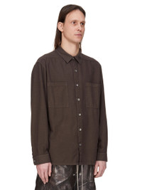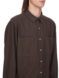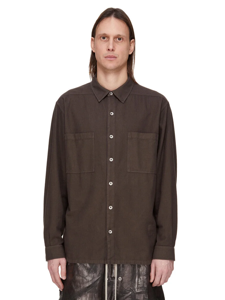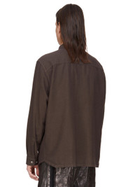 DRKSHDW FW25 CONCORDIANS JUMBO OUTERSHIRT IN DARK DUST LIGHT FLANNEL THIS JUMBO OUTERSHIRT IS BELOW HIP LENGTH WITH A JUMBO OVERSIZED FIT. IT HAS A CENTRE FRONT PLACKET WITH VISIBLE METAL BUTTONS, A CLASSIC COLLAR AND A HEMLINE WITH BEVELED SIDES SEAMS. IT HAS LONG SLEEVES WITH BUTTONED CUFFS, SIGNATURE LEVEL SHOULDER SEAMS AND A BACK YOKE. THIS LIGHTWEIGHT COTTON FLANNEL FABRIC IS GARMENT DYED WITH A SOFT AND BRUSHED HANDFEEL. THIS FABRIC IS MADE USING GOTS CERTIFIED ORGANIC COTTON WHICH MEANS THE NATURAL FIBER IS GROWN WITHOUT HARMFUL CHEMICALS, LEAVING OUR SOIL, AIR AND WATER CLEANER FROM CONTAMINATES. COLOR: DARK DUST MATERIAL: 100% COTTON MODEL IS 189CM TALL MODEL WEARS SIZE XS