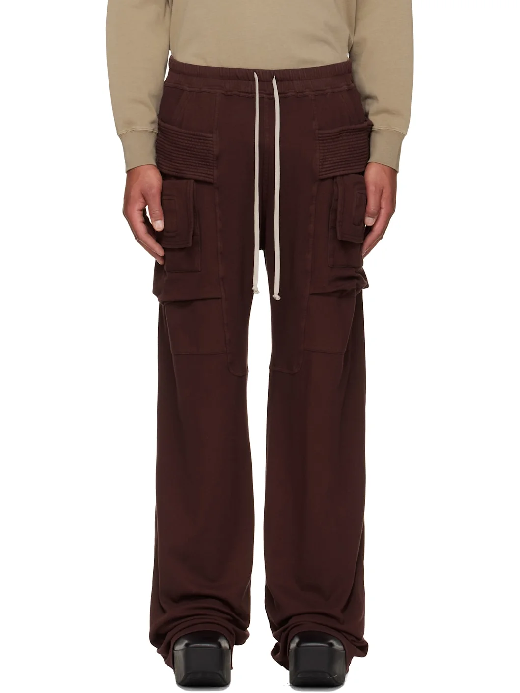 Brushed GOTS-certified organic cotton jersey cargo pants. · Garment-dyed · Wide-leg · Drawstring at elasticized waistband · Four-pocket styling · Quilted straps at front waist · Cargo pocket at outseams Supplier color: Scab 100% cotton. Made in Italy 252126M188020