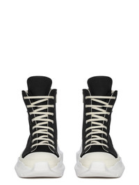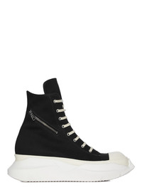 DRKSHDW FW25 CONCORDIANS CARGO ABSTRACT SNEAKS IN BLACK/MILK/MILK 13OZ OVERDYED DENIM THESE CARGO ABSTRACT SNEAKS ARE ABOVE ANKLE HEIGHT AND FEATURE EIGHT EYELETS, A CARGO ANGLED ZIPPER ON THE OUTER FOOT, TOE CAPS AND A VOLUMINOUS RUBBER ABSTRACT SOLE. THIS MEDIUMWEIGHT 13OZ DENIM IS OVERDYED AND HAS A SOFT AND WASHED HANDFEEL THIS FABRIC IS MADE USING GOTS CERTIFIED ORGANIC COTTON WHICH MEANS THE NATURAL FIBER IS GROWN WITHOUT HARMFUL CHEMICALS, LEAVING OUR SOIL, AIR AND WATER CLEANER FROM CONTAMINATES COLOR: BLACK/MILK/MILK MATERIAL: UPPER 100% COTTON TOE 70% POLYURETHANE + 30% VISCOSE LINING 100% COTTON PLATFORM AT HEEL 7CM / AT TOE 5CM