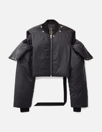 - Rick Owens Drkshdw - Convertible Jacket In Nylon - Made of GRS-certified recycled nylon- - Cropped waist length - Lightweight - Long sleeves - Center front zipper closure - Top snap and shoulder snaps - Shoulders can be worn folded down - Removable high funnel collar with snap closure on neck - Ribbed collar and cuffs - Cotton webbing strap with rivet detail on the back yoke - Fully lined - Inner pockets with snap button - Color: Black - Material: 100% Nylon - See more Puffer Jackets, Jackets and Clothing - Model wears size M - Model measures: Height 186cm, Chest 34”/86cm, Waist 28”/71cm, Hip 36”/91cm - Vendor Code: DU02E7777-NP