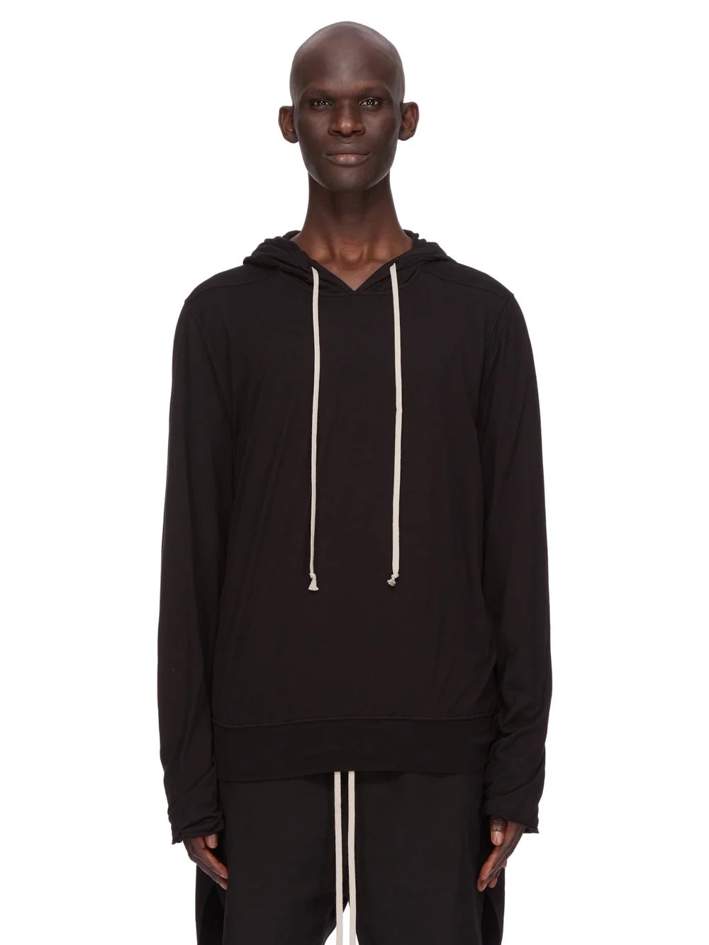 DRKSHDW SS25 HOLLYWOOD OVERSIZED HOODIE IN BLACK COTTON GAUZE JERSEY THIS OVERSIZED HOODIE IS HIP-LENGTH, WITH A LOOSE FIT AND LONG SLEEVES. IT HAS A HOOD WITH A DRAWSTRING, AND RIBBED CUFFS AND WAISTBAND. IT FEATURES THE SIGNATURE LEVEL SHOULDER SEAMS AND SINGLE SEAM RUNNING DOWN THE CENTRE BACK SPINE THIS LIGHTWEIGHT AND AIRY COTTON GAUZE JERSEY IS SEMI TRANSPARENT AND HAVE A SOFT WASHED HANDFEEL. THIS JERSEY IS GARMENT DYED THIS FABRIC IS MADE USING GOTS CERTIFIED ORGANIC COTTON WHICH MEANS THE NATURAL FIBER IS GROWN WITHOUT HARMFUL CHEMICALS, LEAVING OUR SOIL, AIR AND WATER CLEANER FROM CONTAMINATES COLOR: BLACK MATERIAL: 100% COTTON MODEL IS 189CM TALL MODEL WEARS SIZE XS