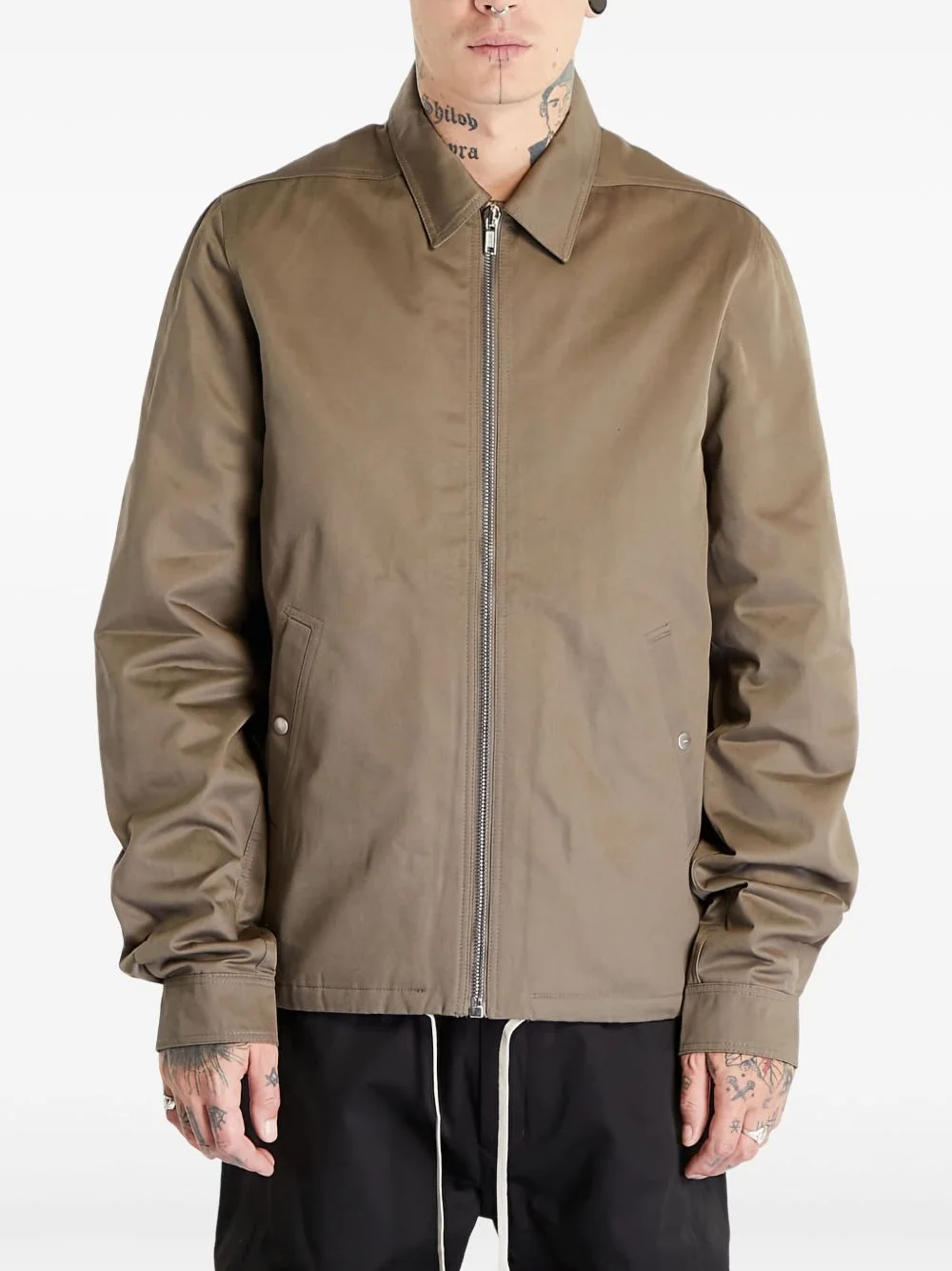 cotton shirt jacket Highlights - Taupe brown - Front zip fastening - Two side welt pockets - Drawstring hem - Long sleeves Imported Composition Lining: Polyester 100% Outer: Organic Cotton 100%