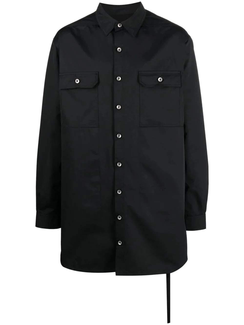 COTTON SHIRT JACKET FROM RICK OWENS DRKSHDW FEATURING BLACK, COTTON, TEXT PRINT, POINTED FLAT COLLAR, FRONT BUTTON FASTENING, LONG SLEEVES AND TWO CHEST FLAP POCKETS.