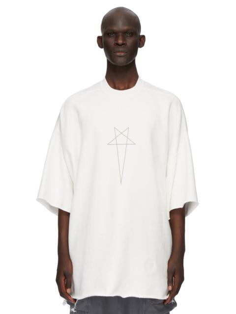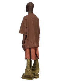 RICK OWENS FW24 PORTERVILLE TOMMY T IN TERRA COMPACT COTTON JERSEY THIS TOMMY T IS BELOW HIP LENGTH WITH A JUMBO OVERSIZED FIT. IT HAS WIDE, SHORT SLEEVES WITH A DROPPED ARMHOLE, RAW CUT HEMS AND A RIBBED CREWNECK. IT FEATURES SIGNATURE FRONT LEVEL SHOULDER SEAMS AND A CENTRE BACK SEAM THIS HEAVYWEIGHT AND COMPACT COTTON JERSEY HAS A BRUSHED AND SOFT HANDFEEL. THIS JERSEY IS GARMENT DYED. THIS FABRIC IS MADE USING GOTS CERTIFIED ORGANIC COTTON WHICH MEANS THE NATURAL FIBER IS GROWN WITHOUT HARMFUL CHEMICALS, LEAVING OUR SOIL, AIR AND WATER CLEANER FROM CONTAMINATES - COLOR: TERRA - MATERIAL: 100% COTTON - MODEL IS 189CM TALL - ITEM IS AVAILABLE IN ONE SIZE