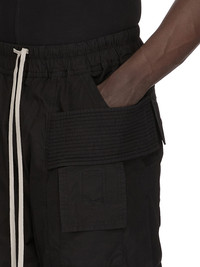 DRKSHDW SS26 TEMPLE CREATCH WIDE CARGO DRAWSTRING IN BLACK COTTON RIP STOP THESE CREATCH CARGO DRAWSTRING PANTS ARE FULL LENGTH. THEY HAVE AN ELASTICIZED WAISTBAND WITH DRAWSTRING AND STITCHED FLY. THEY FEATURE LAYERED FRONT POCKETS WITH SIDE BELT STRAPS WITH SIGNATURE STITCHING LINES AND TWO BACK SQUARE PATCH POCKETS WITH FLAPS AND TOPSTITCHING. THIS LIGHTWEIGHT AND CRISPY COTTON POPLIN IS WOVEN WITH A RIP STOP PATTERN. THIS GARMENT HAS BEEN GARMENT DYED. THIS FABRIC IS MADE USING GOTS CERTIFIED ORGANIC COTTON WHICH MEANS THE NATURAL FIBER IS GROWN WITHOUT HARMFUL CHEMICALS, LEAVING OUR SOIL, AIR AND WATER CLEANER FROM CONTAMINATES. COLOR: BLACK MATERIAL:100% COTTON MODEL IS 189CM TALL MODEL WEARS SIZE S