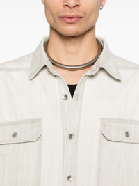 Sl Tommy Jumbo Outershirt in Milk from Rick Owens DRKSHDW Highlights - off white - denim vest - frayed detailing - collar - front button closure - two front patch breast pocket - black branded tie on one side Made in Italy Designer ID: DU01F4764 Materials 100% Cotton