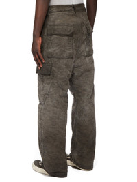 RICK OWENS FW24 PORTERVILLE CARGO TROUSERS IN DUST COTTON MOLESKIN THESE CARGO TROUSERS ARE FULL LENGTH WITH A SLIGHTLY DROPPED CROTCH AND WIDE FIT. THEY HAVE SIDE POCKETS WITH TOPSTITCHING, TWO SQUARE CARGO POCKETS WITH FLAPS, SILVER BUTTON FLY, AND A WAISTBAND WITH BELT LOOPS. THEY HAVE REAR PATCH POCKETS WITH FLAPS AND TOPSTITCHING THIS MEDIUMWEIGHT COTTON MOLESKIN IS GARMENT DYED WITH A SPECIALIZED TECHNIQUE WHICH CREATES THE IRREGULAR COLORATION. IT HAS A SOFT AND BRUSHED HANDFEEL. THE NATURAL ASPECTS OF THIS TREATMENT MEANS THAT THE FADED PARTS ARE DIFFERENT IN EACH GARMENT. THIS IS AN INHERENT CHARACTERISTIC OF THIS TYPE OF TREATMENT AND IS A DESIRED A VISUAL ASPECT WHICH ADDS TO THE UNIQUENESS OF EACH PIECE. THIS FABRIC IS MADE USING GOTS CERTIFIED ORGANIC COTTON WHICH MEANS THE NATURAL FIBER IS GROWN WITHOUT HARMFUL CHEMICALS, LEAVING OUR SOIL, AIR AND WATER CLEANER FROM CONTAMINATES - COLOR: DUST - MATERIAL: 100% COTTON - MODEL IS 189CM TALL - MODEL WEARS SIZE S