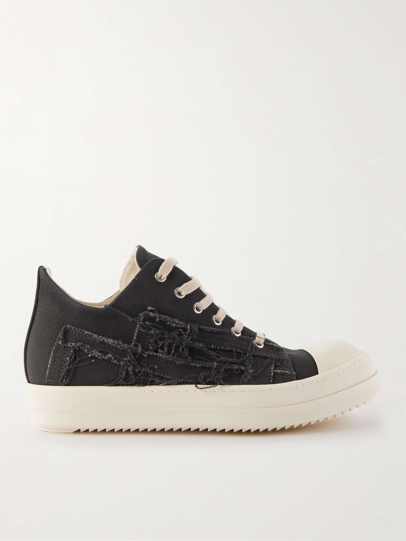 DRKSHDW by Rick Owens' sneakers are made from hardy gabardine that's been slashed, washed, and frayed - a nod to the controversial '90s 'La mode destroy' movement. The signature serrated soles offer comfort and traction. Size & Fit - Fits true to size. Take your normal size - European sizing Details & Care - Black gabardine - Lace-up - Style number: DU01C6809-SLASH7811 - Made in Italy