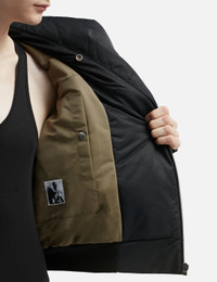 - Rick Owens Drkshdw - Doll Bomber - Padded construction - Asymmetric zip closure - Two front pockets - Ribbed cuffs - Color: Black/Pale Green - Material: 100% Polyamide; Filling: 90% Polyester, 10% Acrylic - See more Jackets and Clothing SIZING - Model wears size S - Model measures: Height 187cm, Chest 36”/91cm, Waist 29”/74cm, Hip 37”/94cm
