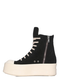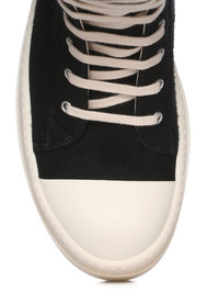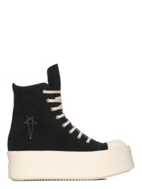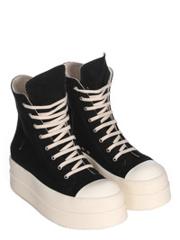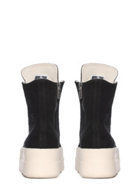 DRKSHDW FW25 CONCORDIANS DOUBLE BUMPER SNEAKS IN BLACK/PEARL/MILK BRUSHED COTTON THESE DOUBLE BUMPER SNEAKS ARE ABOVE ANKLE HEIGHT AND FEATURE EIGHT EYELETS, LACES, A ZIPPER ON THE INSIDE ANKLE FOR EASY FASTENING, TOE CAPS AND DOUBLE HEIGHT BUMPER SHARK TOOTH SOLES. THIS MEDIUMWEIGHT BRUSHED COTTON FABRIC IS GARMENT DYED WITH A SOFT AND BRUSHED HANDFEEL THIS FABRIC IS MADE USING GOTS CERTIFIED ORGANIC COTTON WHICH MEANS THE NATURAL FIBER IS GROWN WITHOUT HARMFUL CHEMICALS, LEAVING OUR SOIL, AIR AND WATER CLEANER FROM CONTAMINATES COLOR: BLACK/PEARL/MILK MATERIAL: UPPER 100% COTTON TOE 70% POLYURETHANE + 30% VISCOSE LINING 100% COTTON SOLE HEIGHT 6.5CM
