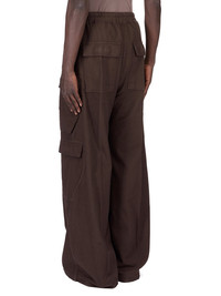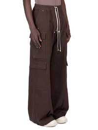 DRKSHDW FW25 CONCORDIANS DOUBLE CARGO JUMBO BELAS IN DRKDUST LIGHT FLANNEL THESE DOUBLE CARGO JUMBO BELA PANTS ARE FULL-LENGTH WITH A LOW CROTCH AND WIDE LEG. THEY FEATURE AN ELASTICIZED WAISTBAND WITH DRAWSTRING AND A BELA EXPOSED CENTER ZIPPER WITH TWO SNAP DETAIL, AND SIDE WELT POCKETS WITH RIVETS. THEY FEATURE TWO BEVELED CARGO POCKETS ON THE THIGH, WITH TWO SQUARE CARGO POCKETS BELOW AND TWO SQUARE BACK POCKETS. THEY ALL HAVE FLAPS AND TOPSTITCHING. THIS LIGHTWEIGHT COTTON FLANNEL FABRIC IS GARMENT DYED WITH A SOFT AND BRUSHED HANDFEEL THIS FABRIC IS MADE USING GOTS CERTIFIED ORGANIC COTTON WHICH MEANS THE NATURAL FIBER IS GROWN WITHOUT HARMFUL CHEMICALS, LEAVING OUR SOIL, AIR AND WATER CLEANER FROM CONTAMINATES COLOR: DRKDUST MATERIAL: 100% COTTON MODEL IS 189CM TALL MODEL WEARS SIZE S