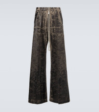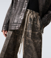 Brand enthusiasts view the DRKSHDW line as an entry point to Rick Owen's subversive design universe. These pants showcase a wide-leg silhouette cut from coated cotton, complete with a drawstring waist and front zip closure. Product Details - Material: 100% cotton - Care instructions: dry clean - Made in Italy - Designer color name: Black Washed Foil - Item color: black, beige - Elasticated drawstring waist - Closure: zipped front - Pockets: slant pockets, cargo pockets, back pockets - Includes: dust bag - Item number: P01057271 Size & Fit - Fits small to size - we recommend trying one size larger - Elasticated waist - Adjustable at the waist - Non-stretchy fabric - Wide-leg - Height of model is 189cm-74.5" and wears a size L