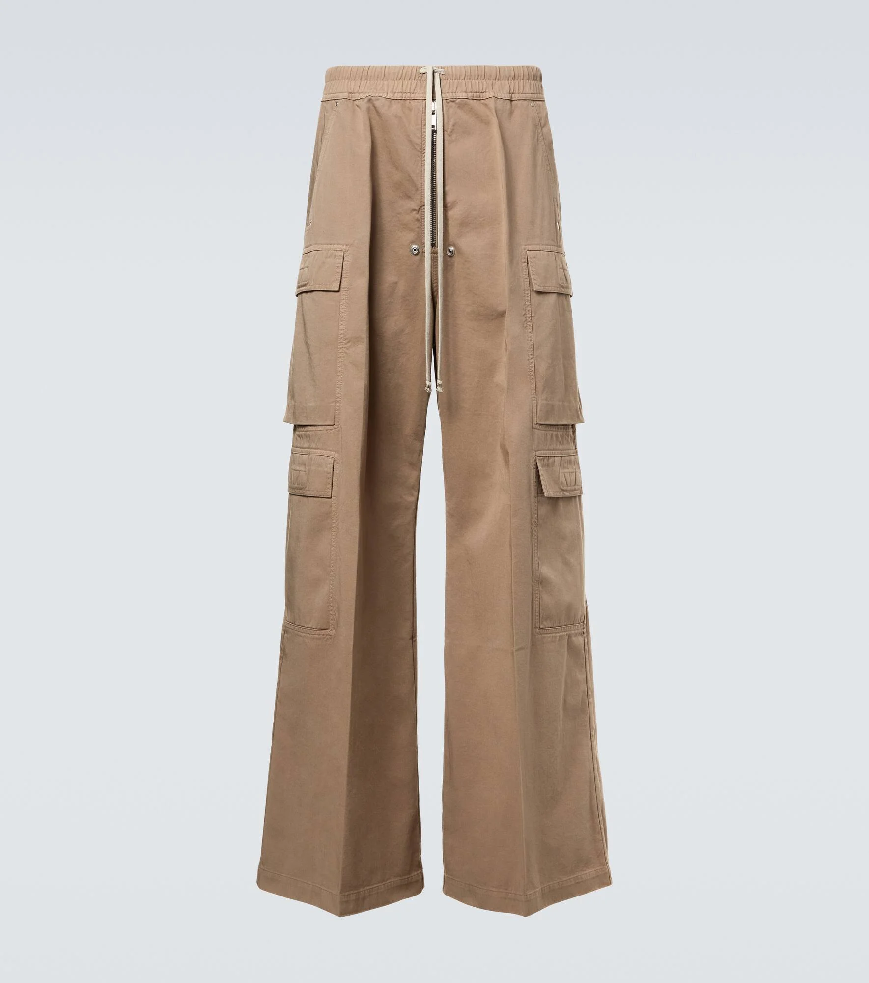 Brand enthusiasts view the DRKSHDW line as an entry point to Rick Owen's subversive design universe. These cargo pants are cut from cotton flannel and detailed with a drawstring waist, front zip fastening, and flap pockets on both sides. Product Details - Material: 100% cotton - Care instructions: hand wash - Made in Italy - Designer color name: Dirtly Pearl - Item color: beige - Elasticated drawstring waist - Closure: zipped front - Pockets: slant pockets, cargo pockets, back pockets - Includes: dust bag - Item number: P01057269 Size & Fit - True to size - Elasticated waist - Adjustable at the waist - Non-stretchy fabric - Wide-leg - Height of model is 189cm-74.5" and wears a size L