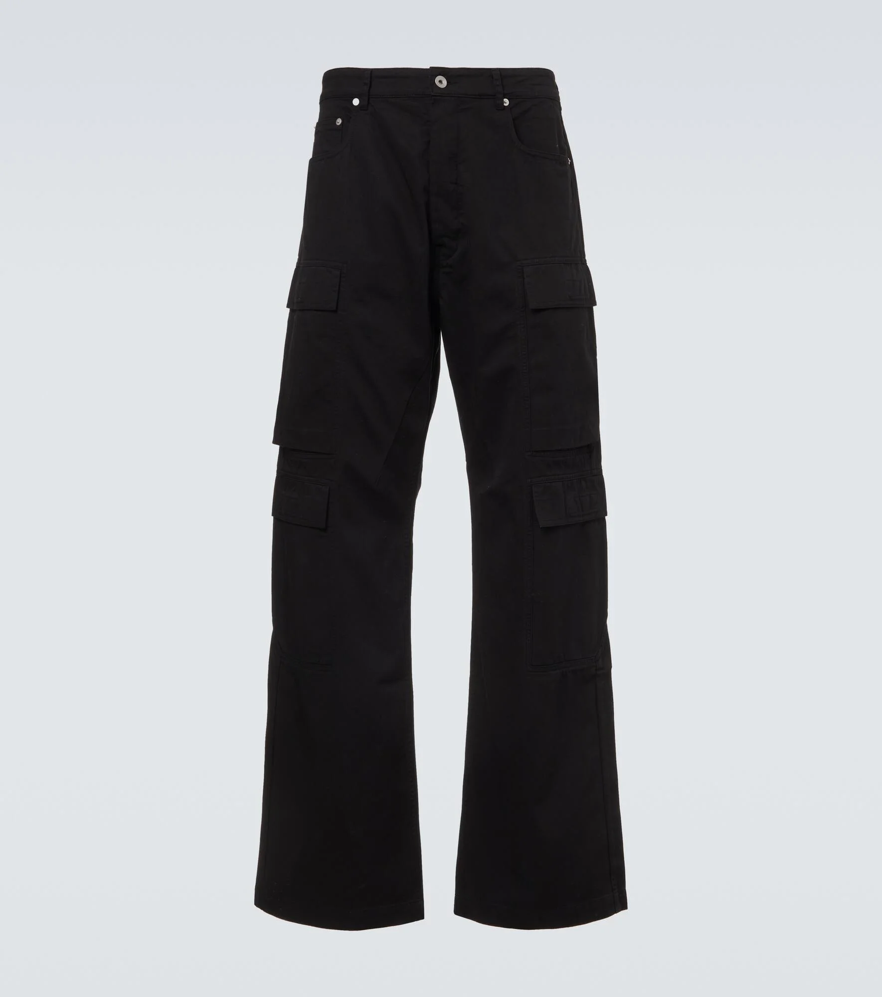 Brand enthusiasts view the DRKSHDW line as an entry point to Rick Owen's subversive design universe. These cargo jeans showcase a low-rise silhouette and a relaxed fit, complete with flap pockets on both sides. Product Details - Material: 100% cotton - Care instructions: hand wash - Made in Italy - Designer color name: Black - Item color: black - Closure: zipper fly, button fastening - Pockets: five pockets, cargo pockets - Includes: dust bag - Item number: P01057257 Size & Fit - Fits large to size - we recommend trying one size smaller - Non-stretchy fabric - Wide-leg - The model in the picture is 185cm-6'1" and wearing a size 31