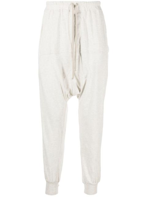 drop-crotch drawstring track pants Highlights - Dark grey - Organic cotton - Elasticated waistband - Drawstring fastening - Drop crotch - Two rear flap pockets Made in Italy Composition Organic Cotton 100% SIZE & FIT Model measurements Height 6 ft 1 in(1.86 m) Bust/Chest 37.4 in(95 cm) Hips 34.64 in(88 cm) Waist 29.13 in(74 cm) FittingInformation Designed with a dropped crotch, offering a loose and relaxed fit Adjust this piece’s waistband to your preference using the drawstring Made from a midweight non-stretch fabric, this piece offers minimal elasticity when worn This piece fits true to size – take your usual size Washing instructions Hand Wash