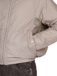 DRKSHDW FW25 CONCORDIANS SEALED WINDBREAKER IN DIRTY PEARLÂ RECYCLED NYLON THIS SEALED WINDBREAKER IS HIP-LENGTH WITH LONG SLEEVES. IT FEATURES A CENTRE FRONT ZIPPER THAT RUNS UP AND AROUND THE HOOD, SO THAT IT CAN CLOSE COMPLETELY OVER THE FACE. IT HAS TWO LARGE SIDE FRONT POCKETS WITH ROUNDED TOPSTITCHING AND VISIBLE SNAP CLOSURE, SIGNATURE CENTRE FRONT SEAM AND ELASTICIZED CUFF AND HEM. THIS VERSION IS PADDED AND HAS INTERNAL SNAP POCKETS. THIS AIRY AND LIGHTWEIGHT NYLON IS MADE USING GRS CERTIFIED RECYCLED NYLON WHICH ENSURES A REDUCTION IN WATER CONSUMPTION, EMISSIONS AND HAZARDOUS WASTE, LESSENING THE DEPENDENCE ON NON-RENEWABLE RESOURCES COLOR: DIRTY PEARL MATERIAL:100% NYLON MODEL IS 189CM TALL MODEL WEARS SIZE S