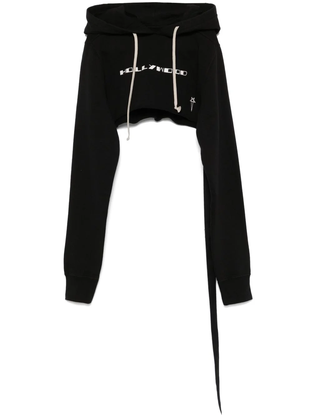 felpa cropped hoodie Highlights - Black - Logo print to the front - Long sleeves - Ribbed cuffs - Raw-cut edge Imported Composition Organic Cotton 100%