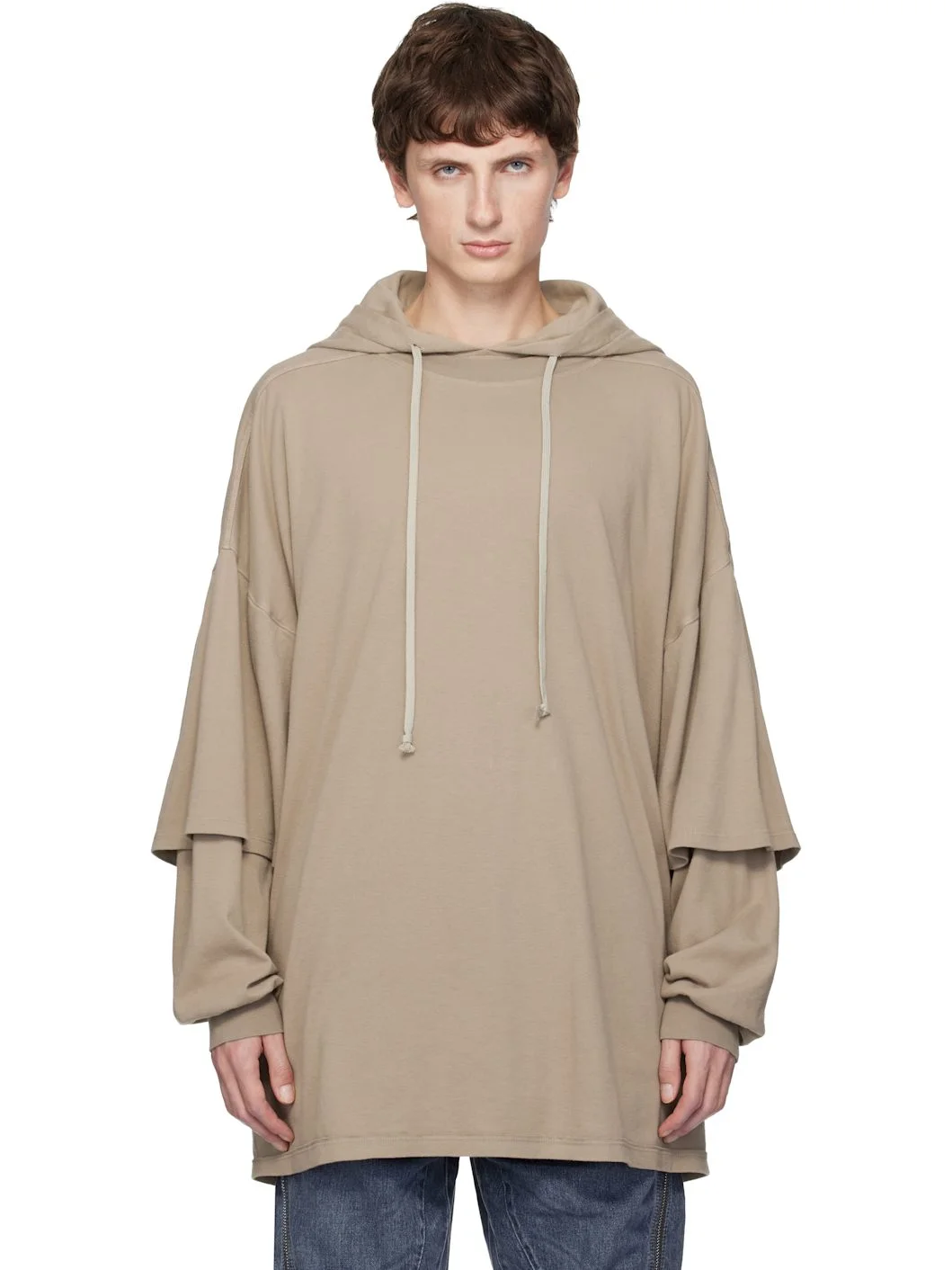 Brushed organic cotton jersey hoodie. · GOTS-certified organic cotton · Garment-dyed · Integrated short-sleeve T-shirt overlay · Drawstring at hood · Dropped saddle shoulders · Rib-knit cuffs · Central seam at back Supplier color: Dirty pearl 100% cotton. Made in Italy 252126M202013