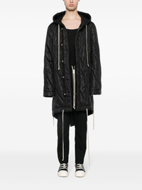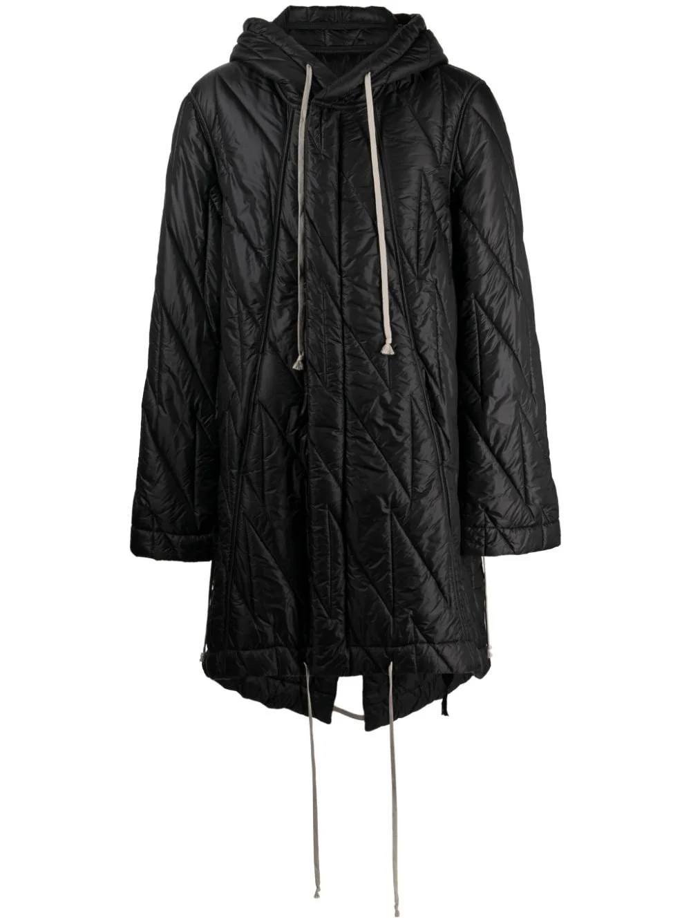 fishtail hooded parka Highlights - Black - Quilted - Drawstring hood - Concealed front zip fastening - Long sleeves - Front flap pockets - Drawstring hem - Fishtail train - Mid-length Imported Composition Filling: Polyester 90%, Acrylic 10% Outer: Polyamide 100% SIZE & FIT Model measurements Height 6 ft 2 in(1.89 m) Bust/Chest 37.4 in(95 cm) Hips 36.61 in(93 cm) Waist 28.34 in(72 cm) FittingInformation Designed to be unstructured, offering a loose fit throughout The tie fastening gives an adaptable and personalised fit Made from a padded non-stretch fabric, giving it no natural elasticity This piece fits true to size – take your usual size Washing instructions Dry Clean Only