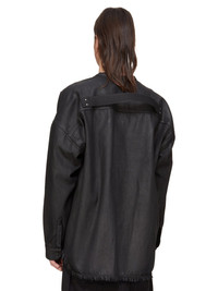 DRKSHDW FW25 CONCORDIANS LIDO LARRY SHIRT IN BLACK WAX 13OZ BLACK WAX DENIM THIS LIDO LARRY SHIRT IS MID THIGH-LENGTH WITH LONG SLEEVES. IT HAS A DEEP V NECK AND CENTRE FRONT OPENING WITH CONCEALED SNAP CLOSURES. IT HAS LEVEL SHOULDER SEAMS, A BACK YOKE WITH COTTON WEBBING STRAP WITH RIVET DETAIL, AND CUFFS WITH CONCEALED SNAPS. IT FEATURES A RAW CUT HEM. IT IS UNLINED AND HAS TWO INTERNAL ZIPPERED POCKETS. THIS MEDIUMWEIGHT BLACK WAX DENIM IS MADE ON A 13OZ JAPANESE BLACK AND NATURAL DENIM. THE READY GARMENT IS OVERDYED BLACK AND TREATED WITH A WAX FINISH. A FINAL WASH GIVES THIS GARMENT ITS SOFTNESS THIS GARMENT IS TREATED IN AN ITALIAN WASH HOUSE BASED IN THE VENETO AREA OF ITALY, THAT PRODUCES IN SMALLER TREATMENT BATHS TO REDUCE WATER WASTE AND UTILIZE A WATER PURIFYING PROCESS THAT ENABLES THEM TO RECYCLE A PORTION OF THE WATER USED. ALL OF OUR DENIM WASHES ARE ZDHC CERTIFIED COLOR: BLACK WAX MATERIAL:100% COTTON MODEL IS 189CM TALL MODEL WEARS SIZE S