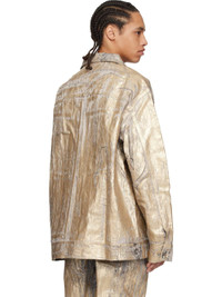 Overdyed non-stretch 13 oz denim jacket. Hand-pressed foil coating throughout. · ZDHC-certified denim · Spread collar · Button closure · Welt pockets · Adjustable barrel cuffs · Adjustable button tabs at back hem · Patch pockets and integrated logo-woven strap at interior · Partial plain-woven lining · Silver-tone hardware Supplier color: Gold Body: 100% cotton. Lining: 52% polyester, 48% cotton. Made in Italy 251126M177009