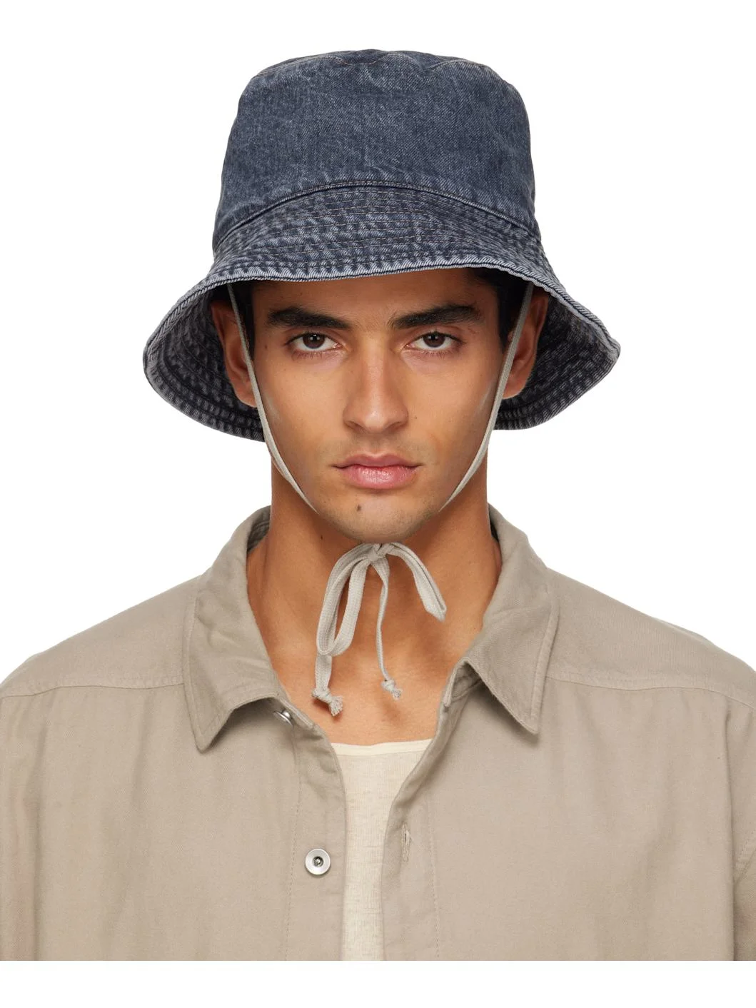 13 oz non-stretch denim hat. · Fading throughout · Quilted brim · Extended webbing trim at interior · Plain-woven lining · Contrast stitching in beige Supplier color: Washed grey 100% cotton. Made in Italy 252126M140000
