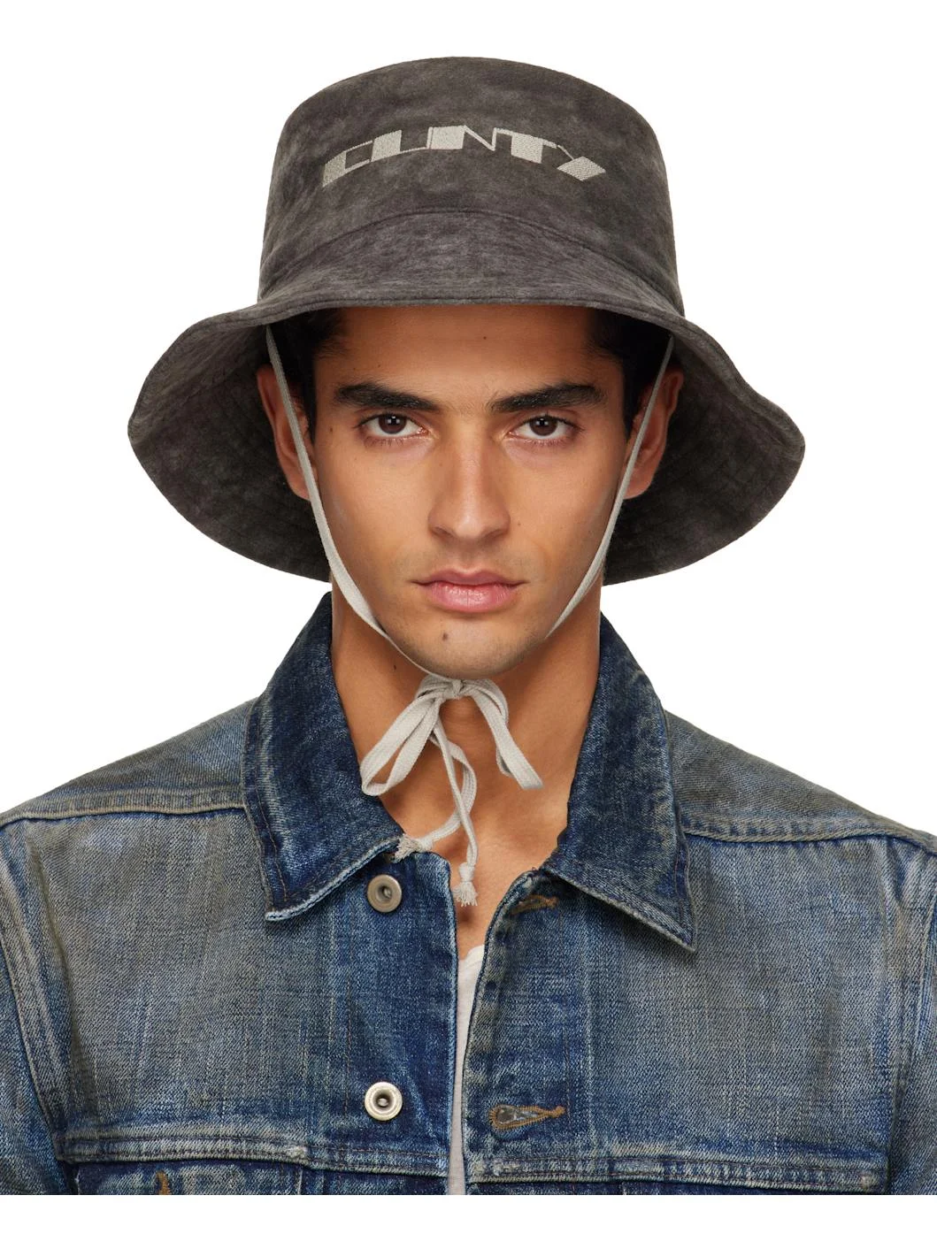 Padded felted organic cotton hat. · Text embroidered at face · Quilted brim · Extended webbing trim at interior · Plain-woven cotton lining Supplier color: Dark dust/Pearl Body: 100% cotton. Trim: 100% polyester. Fill: 100% polyester. Lining: 100% cotton. Made in Italy 252126M140001