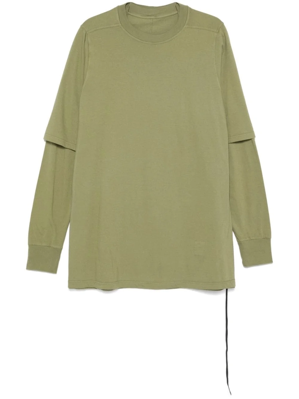 Hustler T T-shirt Highlights - Sage green - Organic cotton - Jersey texture - Layered crew neck - Long sleeves - Straight hem Made in Italy Composition Organic Cotton 100% SIZE & FIT Model measurements Height 6 ft 1 in(1.85 m) Bust/Chest 35.82 in(91 cm) Hips 37.79 in(96 cm) Waist 29.13 in(74 cm) Measurement CHEST 47.99 in(121.9 cm) FittingInformation Designed to be unstructured, offering a loose fit throughout Made from a midweight non-stretch fabric, this piece offers minimal elasticity when worn