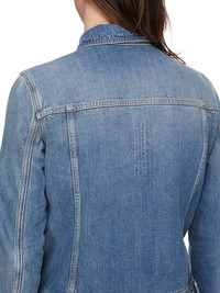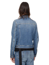 DRKSHDW SS25 HOLLYWOOD TRUCKER IN 13OZ WASHED INDIGO DENIM THIS TRUCKER JKT IS ABOVE HIP LENGTH. IT HAS A CENTRE FRONT PLACKET WITH VISIBLE BUTTON CLOSURES, A CLASSIC COLLAR, TWO CHEST POCKETS WITH FRAYED OUTER FLAP EDGES AND BUTTONS AND SIDE SEAM POCKETS. IT HAS LONG SLEEVES WITH BUTTONED CUFFS, SIGNATURE LEVEL SHOULDER SEAMS, A FRONT AND BACK YOKE AND VERTICAL SEAMED PANELS WITH DOUBLE TOP STITCHING THIS MEDIUMWEIGHT WASHED INDIGO DENIM IS MADE ON A 13OZ INDIGO AND NATURAL JAPANESE SELVEDGE DENIM. THE READY GARMENT IS WASHED WITH MINERALS TO ACHIEVE THE FINAL LOOK. THIS GARMENT IS TREATED IN AN ITALIAN WASH HOUSE BASED IN THE VENETO AREA OF ITALY, THAT PRODUCES IN SMALLER TREATMENT BATHS TO REDUCE WATER WASTE AND UTILIZE A WATER PURIFYING PROCESS THAT ENABLES THEM TO RECYCLE A PORTION OF THE WATER USED. ALL OF OUR DENIM WASHES ARE ZDHC CERTIFIED COLOR: INDIGO MATERIAL: 100% COTTON MODEL IS 189CM TALL MODEL WEARS SIZE S