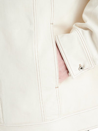 RICK OWENS FW21 GETHSEMANE JUMBO WORKER JKT IN 13OZ BLEACH DENIM THIS JUMBO WORKER JACKET IS HIP LENGTH AND JUMBO OVERSIZED WITH LONG SLEEVES. IT FEATURES A CENTRE FRONT PLACKET WITH VISIBLE BUTTONS, AND A CLASSIC COLLAR AND CUFFS. IT HAS A WAISTBAND HEM, SIDE POCKETS AND DOUBLE TOP STITCHING ON ALL SEAMS THIS VERSION HAS A QUILTED LINING - COLOR: NATURAL - MATERIAL: 100% COTTON - BODY LINING: 100% COTTON - SLEEVES LINING: 100% NYLON - POCKETS LINING: 52% POLYESTER, 48% COTTON - PADDING: 100% POLYESTER